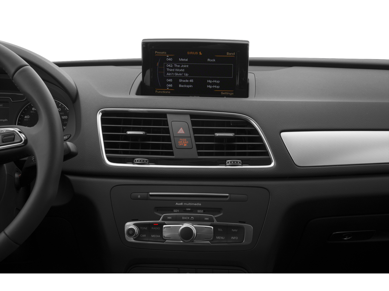 - Radio: Audi Concert System w/AM/FM Radio -inc: CD player (MP3 capable), auxiliary input jack, 12-station presets, speed-dependent volume control, Audi music interface w/Lightning adapter cable, Audi sound system w/10 speakers including front center speaker and subwoofer in rear, 180 watts, 6-channel amplifier, 2 tweeters in the dashboard, 1 center fill speaker in the dashboard, 2 speakers in the front doors, 2 speakers in the rear doors, 2 tweeters in the rear doors, 1 subwoofer in spare wheel well, Bluetooth® wireless technology preparation for compatible mobile phones and streaming audio for compatible devices, SiriusXM Satellite Radio all access service w/3-month trial subscription, USB charging port and voice control system