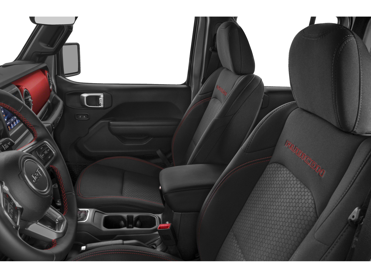 Electronic Infotainment System Group (1-Year SiriusXM Guardian Trial, 5-Year SiriusXM Traffic Service, 5-Year SiriusXM Travel Link Service, 8.4 Touchscreen Display, Alpine Premium Audio System, Auto-Dimming Rear-View Mirror, GPS Navigation, HD Radio, Radio: Uconnect 4C Nav w/8.4 Display, Roadside Assistance & 9-1-1 Call, SiriusXM Traffic Plus, and SiriusXM Travel Link), LED Lighting Group (Daytime Running Lamps LED Accents, Front LED Fog Lamps, LED Reflector Headlamps, and LED Taillamps), Quick Order Package 24R, Safety Group (Blind Spot & Cross Path Detection and ParkSense Rear Park Assist System), Trailer Tow & HD Electrical Group (240 Amp Alternator, 7 & 4 Pin Wiring Harness, 700 Amp Maintenance Free Battery, Auxiliary Switches, and Class II Receiver Hitch), Cold Weather Group (Heated Front Seats and Heated Steering Wheel), 21.5 Gallon Fuel Tank (DISC), 4-Wheel Disc Brakes, 4.10 Rear Axle Ratio, 8 Speakers, ABS brakes, Air Conditioning, Alloy wheels, AM/FM radio: SiriusXM, Apple CarPlay/Android Auto, Automatic temperature control, Body Color 3-Piece Hard Top, Body Color Fender Flares, Brake assist, Compass, Delay-off headlights, Driver door bin, Driver vanity mirror, Dual front impact airbags, Dual front side impact airbags, Electronic Stability Control, Freedom Panel Storage Bag, Front anti-roll bar, Front Bucket Seats, Front Center Armrest w/Storage, Front dual zone A/C, Front fog lights, Front reading lights, Fully automatic headlights, Garage door transmitter, Heated door mirrors, Illuminated entry, Integrated roll-over protection, Leather steering wheel, Low tire pressure warning, Manufacturer's Statement of Origin (DISC), Non-Lock Fuel Cap w/o Discriminator, Occupant sensing airbag, Outside temperature display, Panic alarm, ParkView Rear Back-Up Camera, Passenger door bin, Passenger vanity mirror, Performance Suspension, Power door mirrors, Power steering, Power windows, Premium Cloth Low-Back Bucket Seats, Radio data system, Radio: Uconnect 4 w/7 Display, Rear anti-roll bar, Rear reading lights, Rear Window Defroster, Rear Window Wiper/Washer, Remote keyless entry, Remote Start System, Security system, Speed control, Split folding rear seat, Steering wheel mounted audio controls, Tachometer, Telescoping steering wheel, Tilt steering wheel, Traction control, Trip computer, Variably intermittent wipers, Voltmeter, and Wheels: 17 x 7.5 Polished w/Black Pockets.