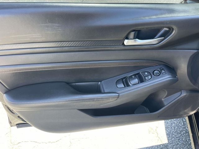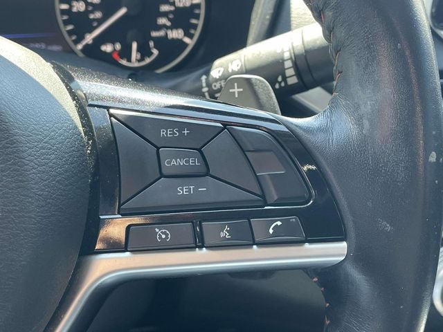 CVT with Xtronic, 19 Alloy Wheels, 4-Wheel Disc Brakes, 6 Speakers, ABS brakes, Air Conditioning, Alloy wheels, AM/FM radio: SiriusXM, Blind Spot Warning, Brake assist, Bumpers: body-color, Delay-off headlights, Driver door bin, Driver vanity mirror, Dual front impact airbags, Dual front side impact airbags, Electronic Stability Control, Four wheel independent suspension, Front anti-roll bar, Front Bucket Seats, Front Center Armrest w/Storage, Front reading lights, Front Sport Bucket Seats, Fully automatic headlights, Illuminated entry, Knee airbag, Leather Shift Knob, Low tire pressure warning, NissanConnect featuring Apple CarPlay and Android Auto, Occupant sensing airbag, Outside temperature display, Overhead airbag, Overhead console, Panic alarm, Passenger door bin, Passenger vanity mirror, Power door mirrors, Power driver seat, Power steering, Power windows, Radio data system, Radio: AM/FM Audio System, Rear anti-roll bar, Rear reading lights, Rear seat center armrest, Rear side impact airbag, Rear window defroster, Remote keyless entry, Security system, Speed control, Speed-sensing steering, Split folding rear seat, Spoiler, Sport Seat Trim, SR Floor Mats/Trunk Mat/Hideaway Nets, Steering wheel mounted audio controls, Tachometer, Telescoping steering wheel, Tilt steering wheel, Traction control, Trip computer, and Variably intermittent wipers.