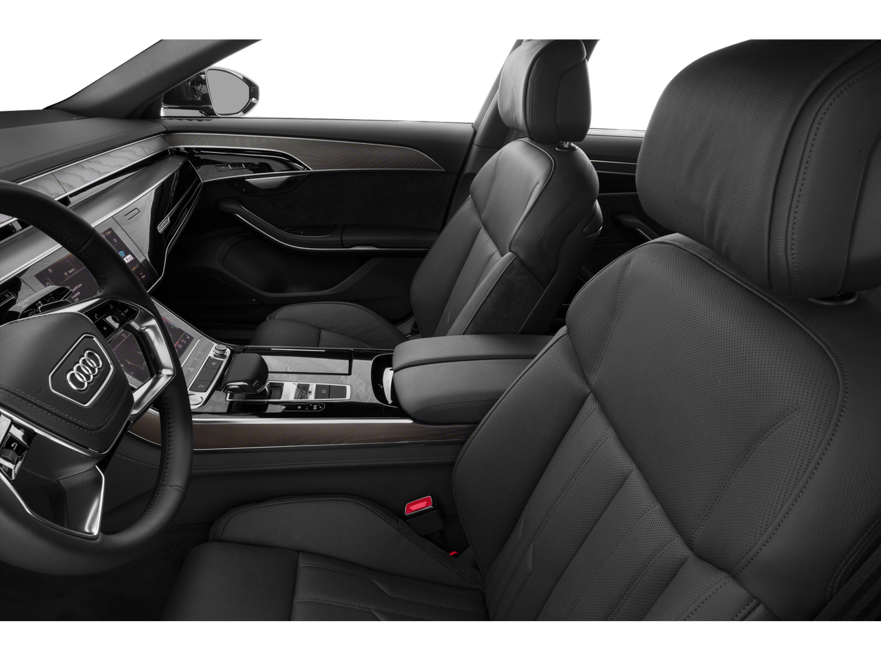 Chrome Exterior Package, Cold Weather Package (Adaptive Windshield Wiping System, Heated Front Surfaces, and Heated Rear Outboard Seats), Contour/Ambient LED Interior Lighting Package, Driver Assistance Package (Audi Active Lane Assist, Audi Adaptive Cruise Assist, Intersection Assist, and Traffic Sign Recognition), Executive Package (Acoustic & Break Resistant Dual-Pane Side Windows, Audi Head-Up Display, Audi Phone Box, Audi Pre Sense Rear, Audi Side Assist, Heated 4-Spoke Multifunction Steering Wheel, Top View Camera System, and Ventilated Comfort Front Seats), Sport Style Exterior Package (20 10-Parallel-Spoke-Design Wheels), Black w/Valetta Leather Seat Upholstery or Valcona Leather Seat Upholstery, 17 Speakers, 4-Wheel Disc Brakes, ABS brakes, Adaptive suspension, Air Conditioning, Alloy wheels, AM/FM radio: SiriusXM, Audi smartphone interface (Apple CarPlay/Android Auto), Auto High-beam Headlights, Auto tilt-away steering wheel, Auto-dimming door mirrors, Auto-dimming Rear-View mirror, Auto-leveling suspension, Automatic temperature control, Bang & Olufsen 3D Premium Sound System, Brake assist, Bumpers: body-color, Compass, Delay-off headlights, Door auto-latch, Driver door bin, Driver vanity mirror, Dual front impact airbags, Dual front side impact airbags, Electronic Stability Control, Emergency communication system: Audi connect CARE, Exterior Parking Camera Rear, Four wheel independent suspension, Front anti-roll bar, Front Bucket Seats, Front Center Armrest w/Storage, Front dual zone A/C, Front fog lights, Front reading lights, Garage door transmitter: HomeLink, Genuine wood console insert, Head restraints memory, Headlight cleaning, Heated door mirrors, Heated Front Seats, Heated front seats, HVAC memory, Illuminated entry, Knee airbag, Leather Shift Knob, Leather steering wheel, Low tire pressure warning, Memory seat, Navigation system: MMI Navigation plus, Occupant sensing airbag, Outside temperature display, Overhead airbag, Overhead console, Panic alarm, Passenger door bin, Passenger vanity mirror, Power 2nd-Row Moonroof, Power adjustable front head restraints, Power door mirrors, Power driver seat, Power moonroof, Power passenger seat, Power steering, Power windows, Radio data system, Radio: MMI Navigation Plus, Rain sensing wipers, Rear air conditioning, Rear anti-roll bar, Rear dual zone A/C, Rear fog lights, Rear reading lights, Rear seat center armrest, Rear side impact airbag, Rear Window Blind, Rear window defroster, Remote keyless entry, Seatbelt memory, Security system, Speed control, Speed-sensing steering, Speed-Sensitive Wipers, Steering wheel memory, Steering wheel mounted audio controls, Tachometer, Telescoping steering wheel, Tilt steering wheel, Traction control, Trip computer, Turn signal indicator mirrors, Valetta Leather Seat Upholstery, Variably intermittent wipers, and Wheels: 19 15-Spoke Design.