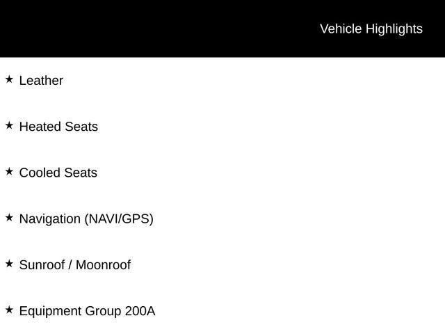 Leather, Heated Seats, Cooled Seats, Navigation (NAVI/GPS), Sunroof / Moonroof, Equipment Group 200A.
