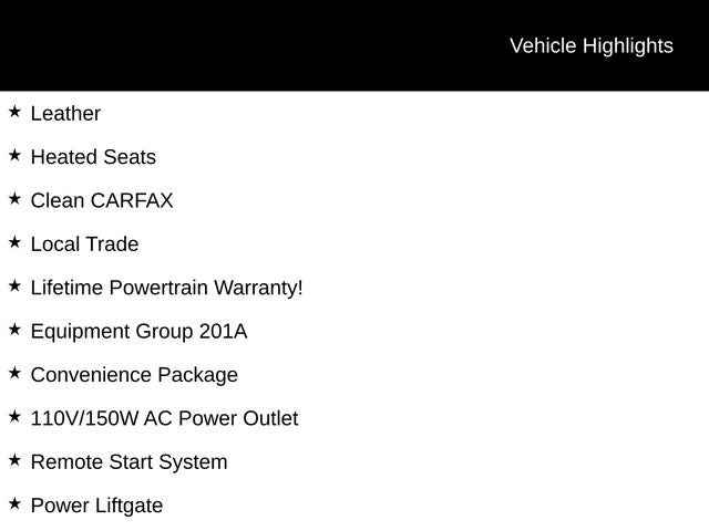 Leather, Heated Seats, Clean CARFAX, Local Trade, Lifetime Powertrain Warranty!, AWD, 110V/150W AC Power Outlet, Convenience Package, Equipment Group 201A, Fog Lamps w/Iconic Silver Bezel, Perimeter Alarm, Power Liftgate, Remote Start System, Universal Garage Door Opener (UGDO), Wireless Charging Pad.