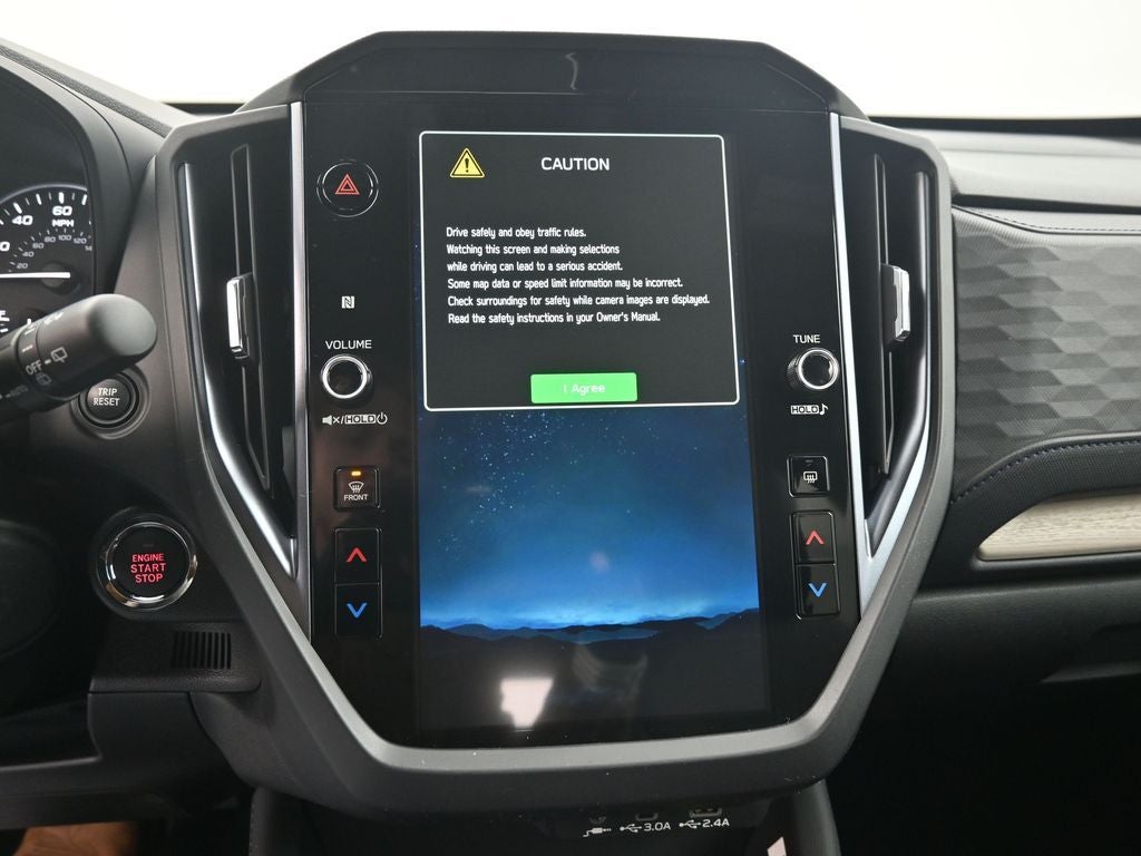 - Radio: Subaru 11.6" Multimedia Plus System -inc: valet mode, integrated center information display, AM/FM stereo HD Radio, multi-touch gesture high resolution display screen, voice activated controls, Bluetooth® audio streaming and hands-free phone connectivity w/SMS text messaging (refer to Subaru.com for cellphone compatibility), iPod control capability, smartphone integration: Android Auto and Apple CarPlay w/full screen view and wireless connection, SiriusXM satellite radio w/360L (free 4-month trial subscription included), USB and Over The Air (OTA) audio system update, steering wheel controls, 6 speakers, 3.5mm auxiliary input jack and roof mounted audio and satellite antenna